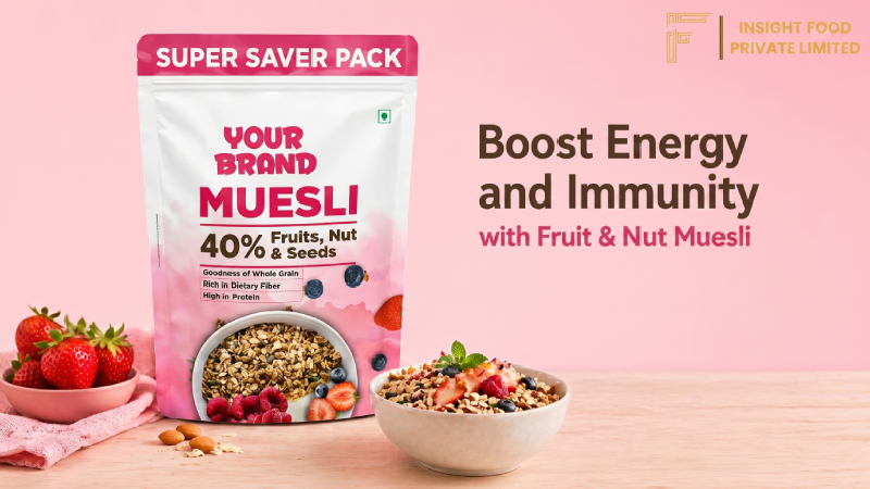 Muesli deserves the status of best superfood breakfast of the day. Its hearty blend of whole grain, fruits, nuts, and seeds ensures complete nutrition, long-lasting energy, gastrointestinal aid, and deliciousness in every meal. Muesli can provide a perfect breakfast option for consumers who want to start the day smarter and have a breakfast that perfectly fits into the modern lifestyle. To those interested in taking advantage of the booming market on health food, collaborating with reputed Private Label Muesli Manufacturers in India makes available to them the opportunity to grow by massive leaps. Insight Food Private Limited boasts high quality muesli solutions, which are a blend of quality, nutrition and market ready innovation.